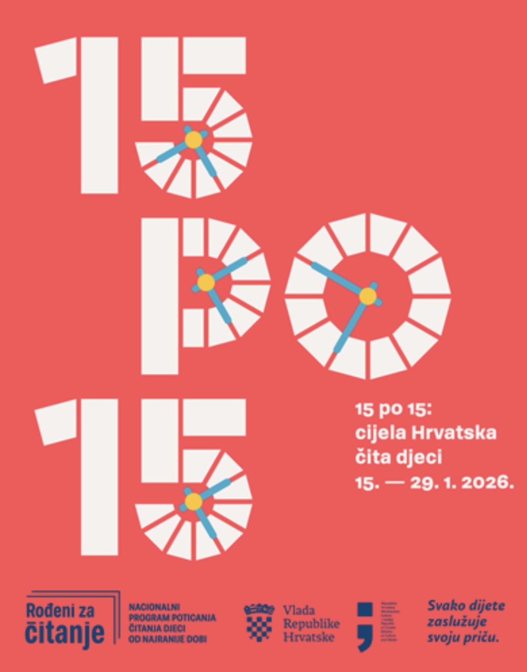 Kampanja je to koja poziva roditelje, skrbnike, braću, sestre, vrtiće, knjižnice i sve odrasle koji se brinu o djeci da 15 dana zaredom čitaju djeci 15 minuta.