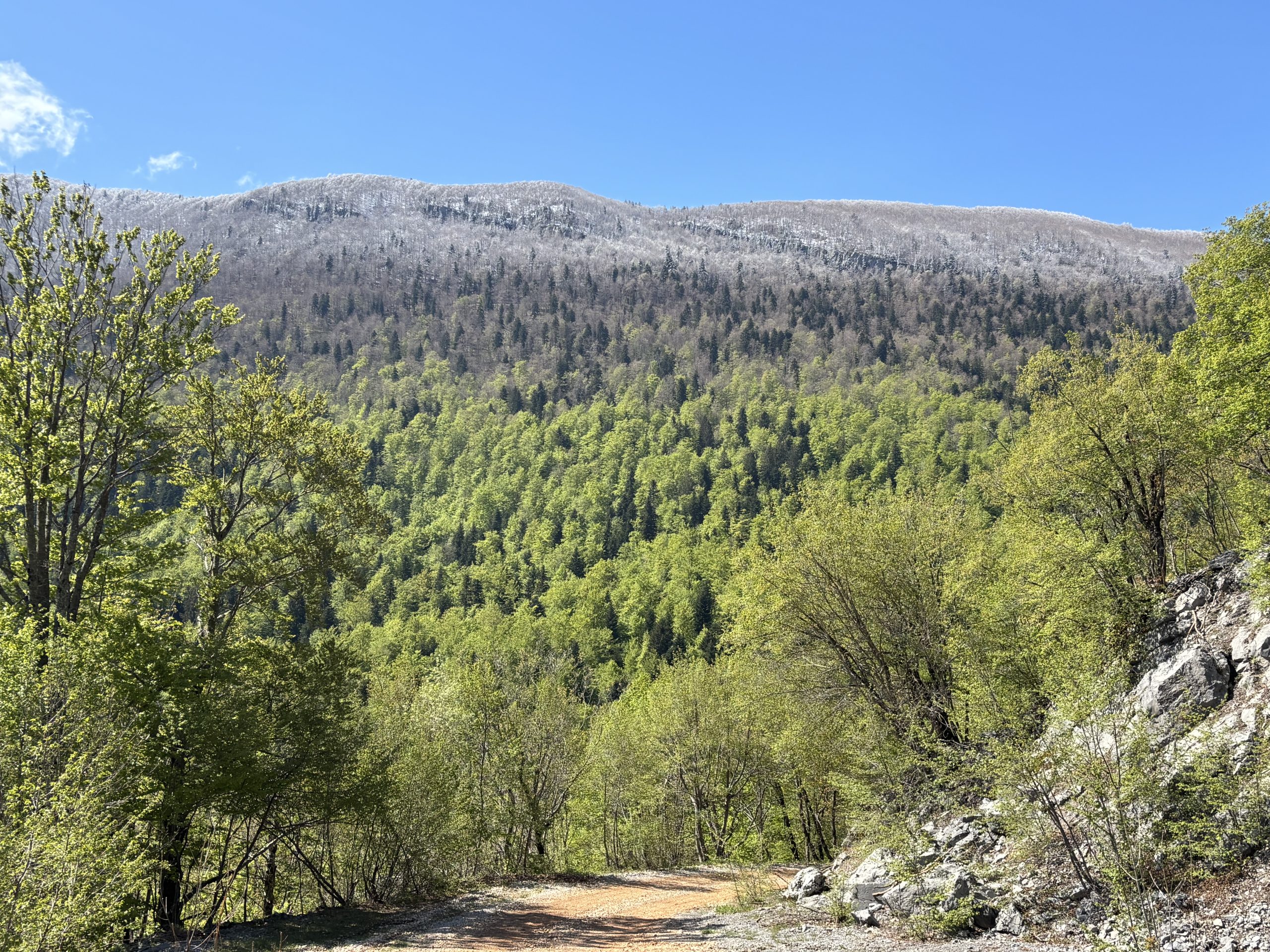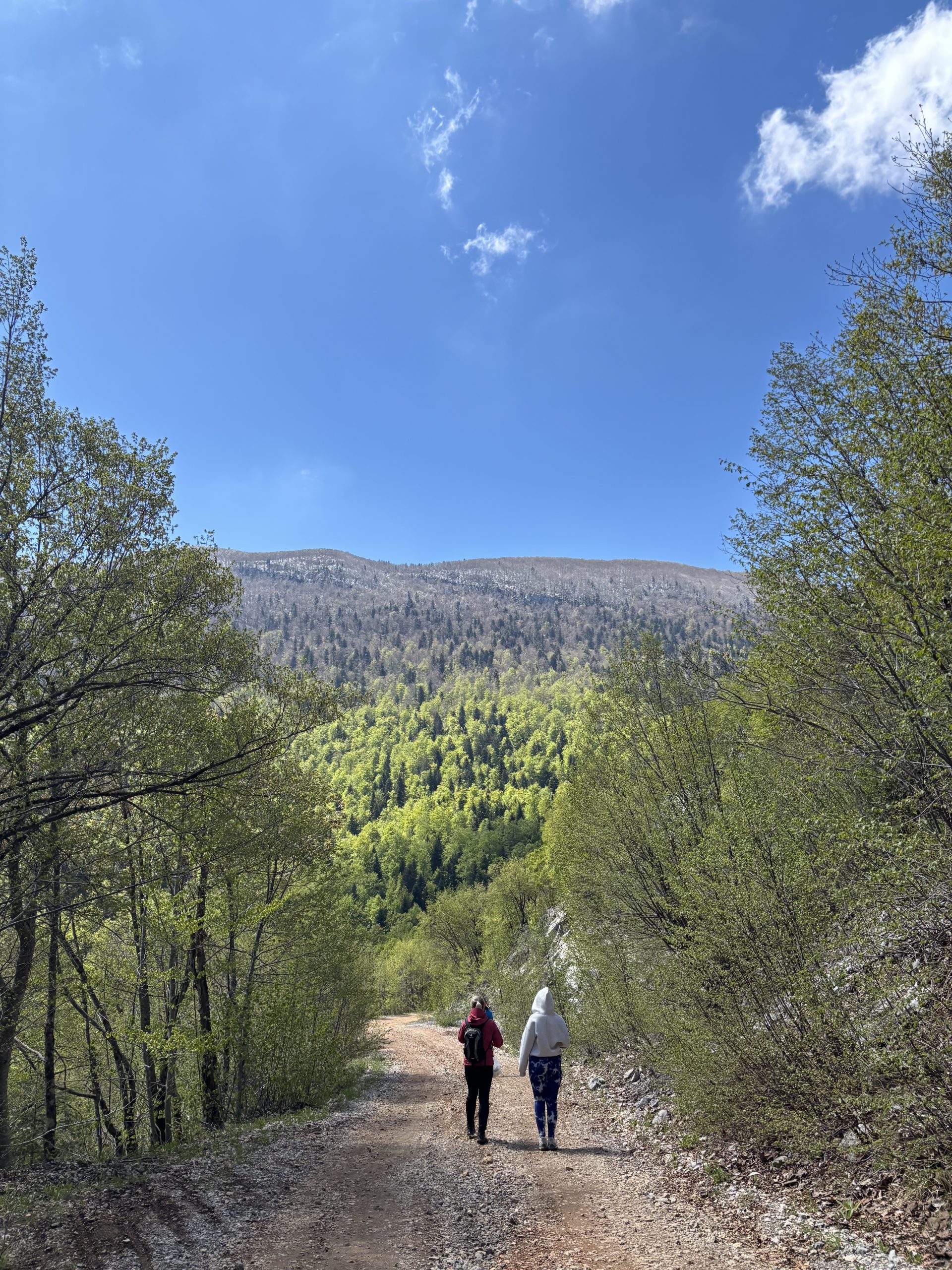 Krenuli smo iz Gornjeg Kosinja, prošli smo kroz Kosinjski Bakovac, a od raskrižja (Park prirode Velebit) smo krenuli pješice šumskim putem, označenim s putokazima i dugim 2 km.