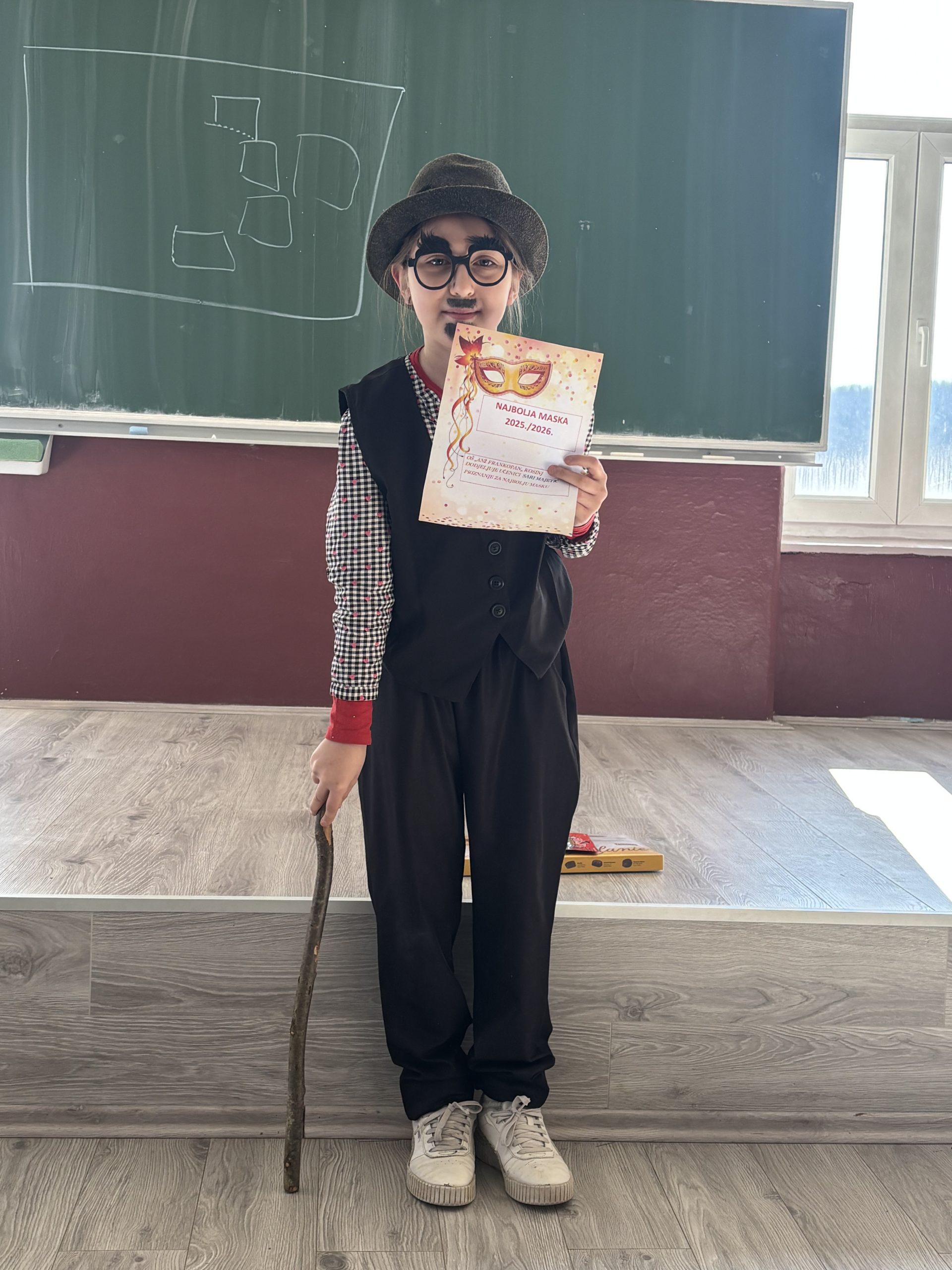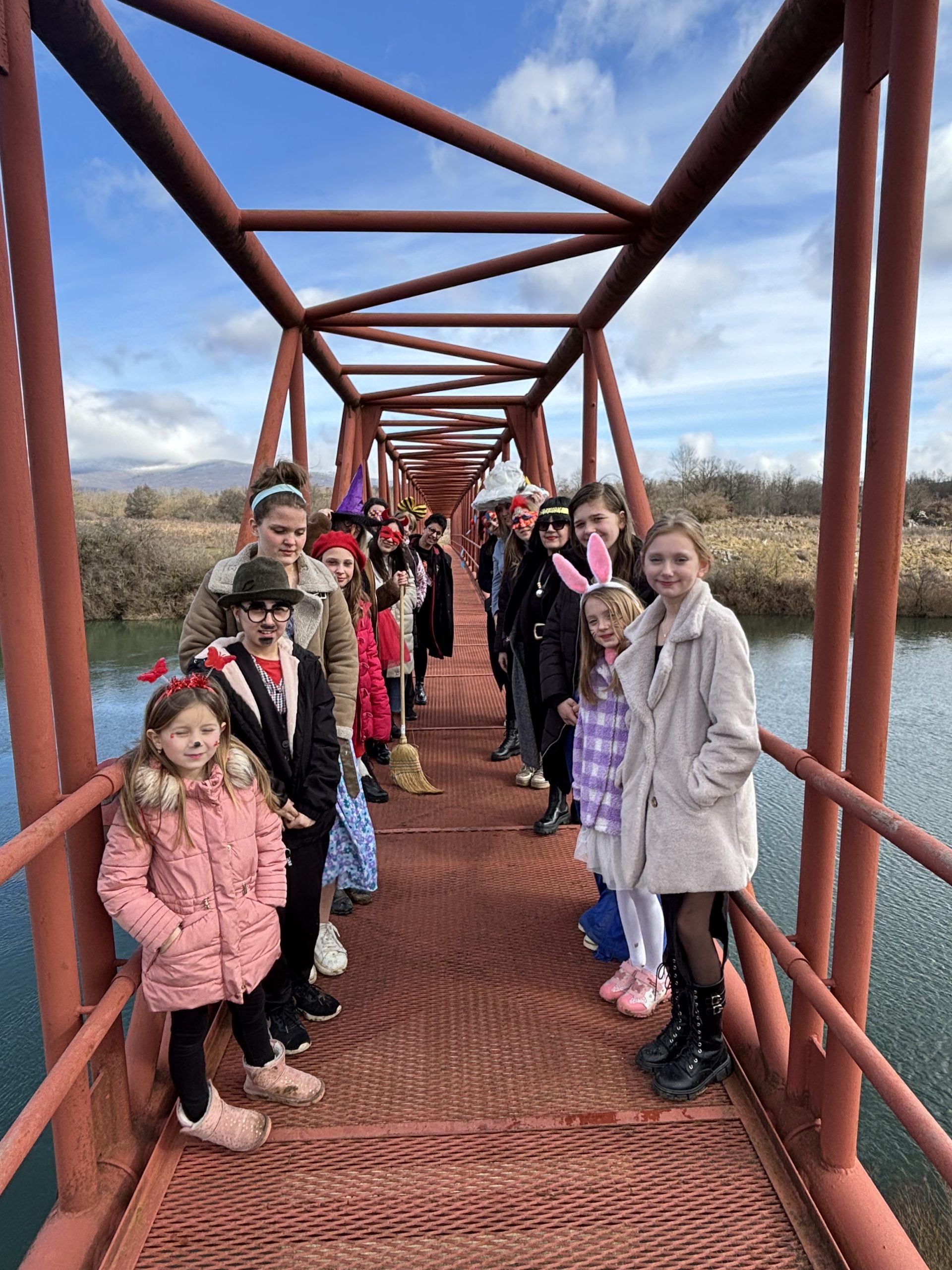 Zamaskirana povorka je prošetala do pješačkog visećeg mosta. A nakon šetnje smo se družili uz krafne i pjesmu. Učenica Sara Majetić je osvojila priznanje za najbolju ovogodišnju masku.