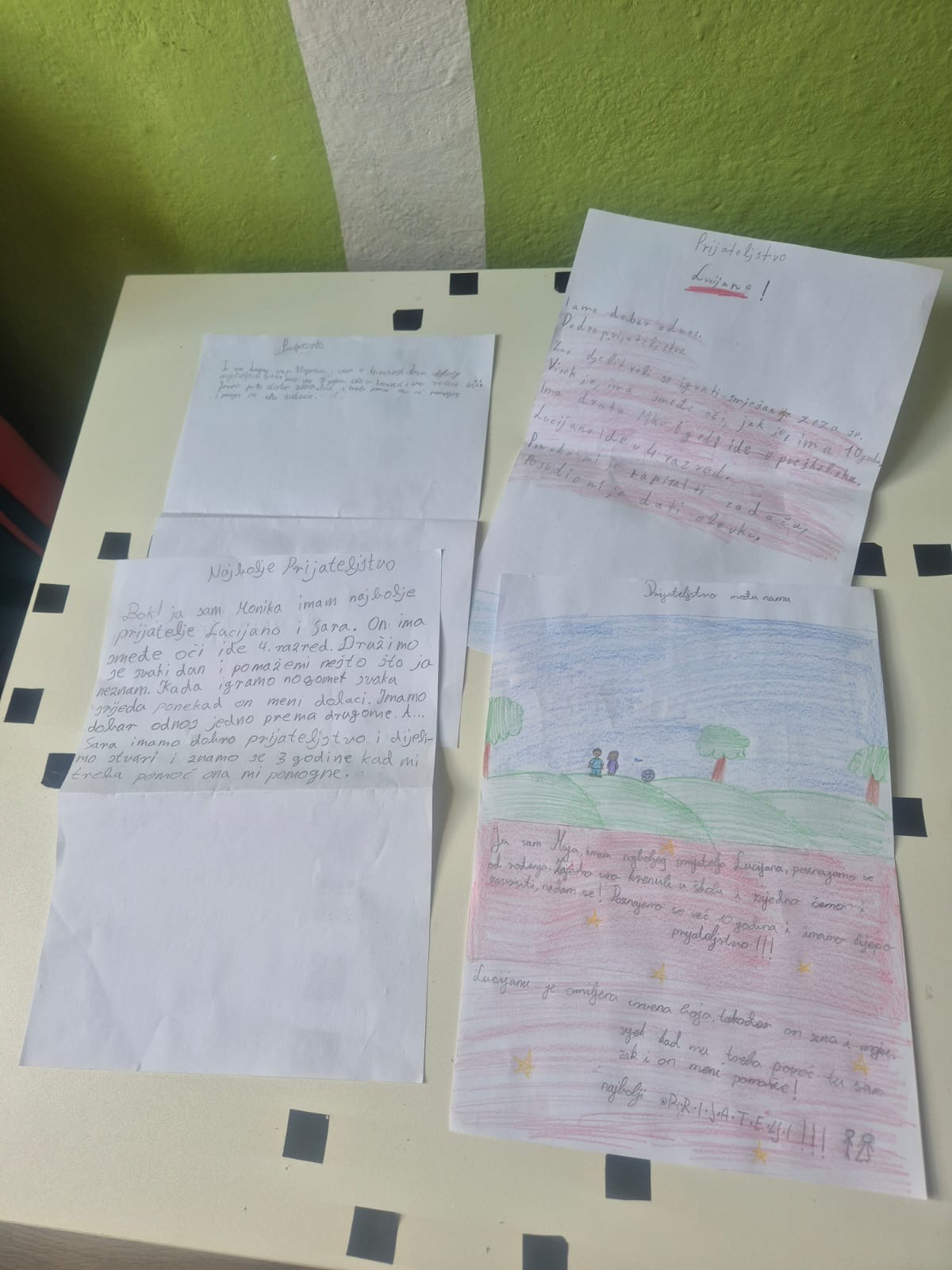 Učenici razredne nastave napisali su priče o prijateljstvu i pomaganju jedni drugima dok su učenice 8. razreda napravile plakat o Tinu Ujeviću i njegovoj pjesmi Pobratimstvo lica u svemiru. Pjesmu su analizirale te su napisale citate o miru, dijalogu i zajedništvu.